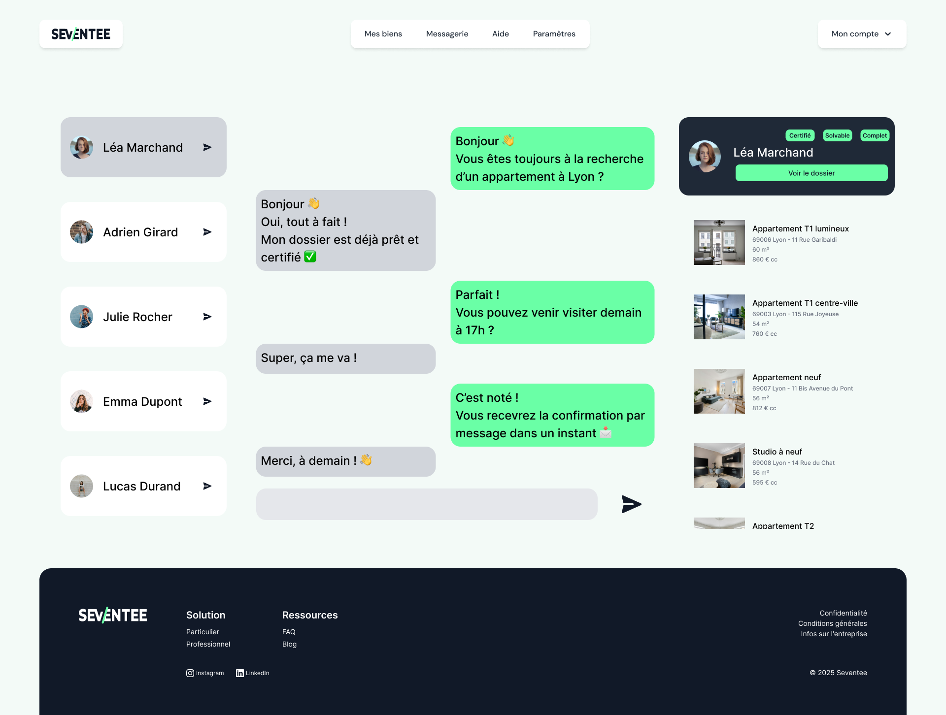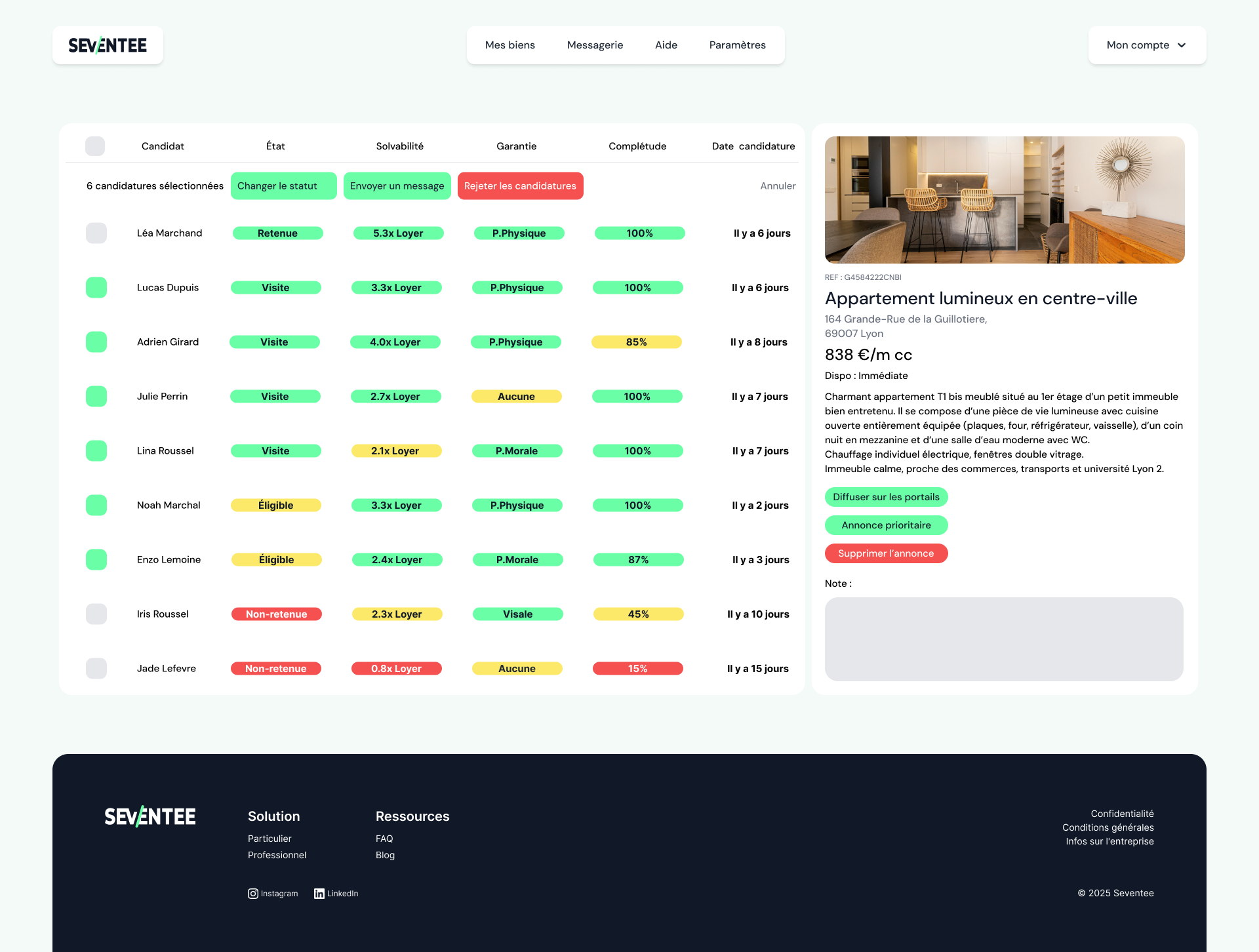 Seventee centralise et trie toutes les candidatures, en mettant en avant celles qui sont complètes et solvables.